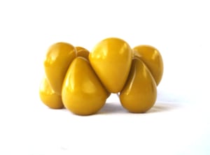 Tagua bracelet with teardrop shaped pieces aligned in two rows with elastic thread dyed with natural products. Tagua, is a fruit of the ivory-nut palm (Phytelephas macrocarpa) its flourishes in the rainforest of South America. Known also as vegetable ivory, the Tagua is used as a substitute for ivory.